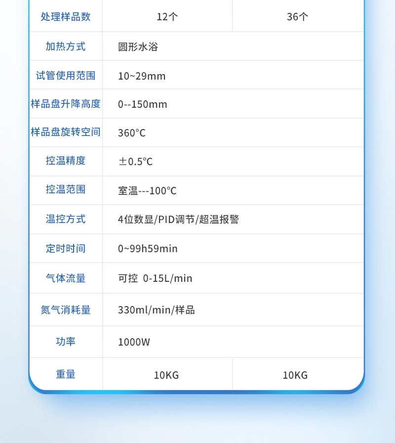 處理樣品數(shù) | 12個 | 24個 | 36個 |