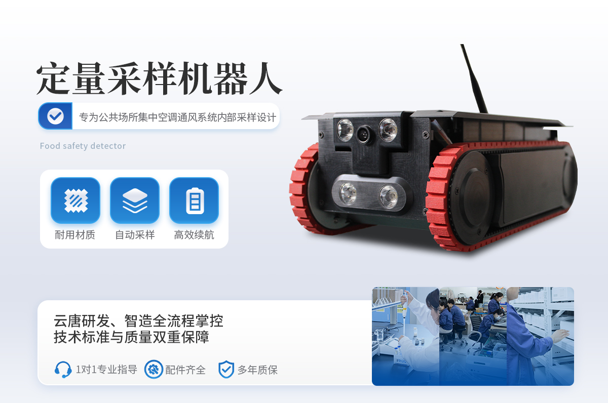 定量采樣機器人是一款專為公共場所集中空調(diào)通風(fēng)系統(tǒng)內(nèi)部采樣設(shè)計的高精度、便攜式智能設(shè)備。該產(chǎn)品嚴格按照《WS 10013-2023公共場所集中空調(diào)通風(fēng)系統(tǒng)衛(wèi)生規(guī)范》、《WS/T 10004-2023公共場所集中空調(diào)通風(fēng)系統(tǒng)衛(wèi)生學(xué)評價規(guī)范》以及《GB 37488-2019公共場所衛(wèi)生指標及限值要求》中的相關(guān)標準進行設(shè)計與制造,確保了其在各種工業(yè)環(huán)境下的穩(wěn)定性和可靠性。它采用了**的航空鋁合金材料,結(jié)合了**的移動性能與卓越的采樣技術(shù),能夠滿足多種行業(yè)的通風(fēng)管道檢測和維護工作需求。