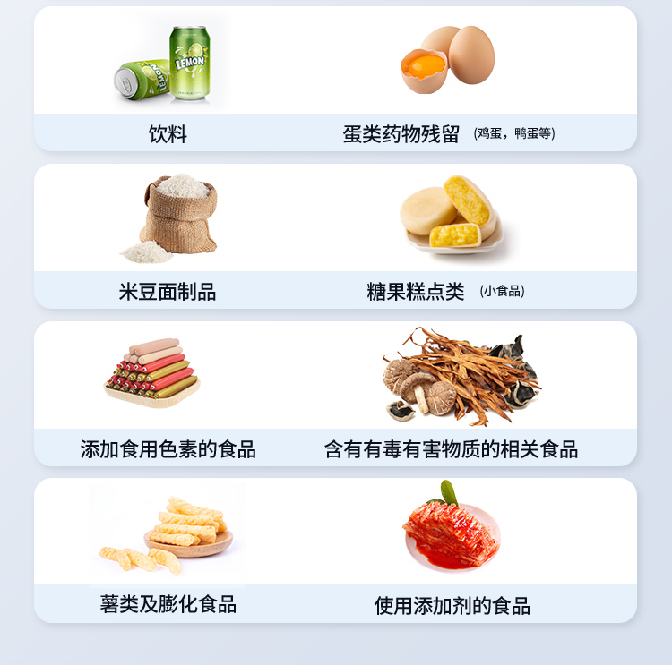 | 1. 功能構(gòu)成:主要包括分光光度模塊、新型農(nóng)殘檢測模塊、膠體金檢測模塊、熒光檢測模塊、數(shù)字化管理模塊等,所有模塊集成一體,可快速檢測200多種食品安全項(xiàng)目,如獸藥殘留、農(nóng)藥殘留、非法添加劑、細(xì)菌數(shù)值等指標(biāo)。 | 2. 檢測樣品種類:餐具及廚房用品、瓜果蔬菜及其制品、水產(chǎn)品及其制品、畜禽產(chǎn)品及其制品、嬰幼兒乳品及奶粉制品、蜂蜜、糧油及其制品、調(diào)味品(食醋、醬油、味精、鹽等)、酒類茶葉及其制品、食用菌、飲料、蛋類藥物殘留(雞蛋,鴨蛋等)、米豆面制品、糖果糕點(diǎn)類(小食品)、薯類及膨化食品、瓶(桶)裝飲用水、添加食用色素的食品、使用添加劑的食品、含有有毒有害物質(zhì)的相關(guān)食品。 | 3、顯示屏幕:儀器采用15.6英寸液晶觸摸屏顯,搭配運(yùn)行安卓智能操作系統(tǒng),主控芯片采用ARM Cortex-A7,RK3288/4核處理器,主頻1.88Ghz,操作方便,性能更強(qiáng)。 | 4、供電模式:儀器交直流兩用,直流12V供電,可連接車載電源,配18ah大容量充電鋰電池,電量可實(shí)時(shí)顯示,無外部電源條件下可持續(xù)工作至少 4 小時(shí)。 | 5、檢測通道:≥24通道;采用精密旋轉(zhuǎn)比色池設(shè)計(jì),使用同芯片同光源校準(zhǔn)精度,解決不同光源之間的誤差值,更加準(zhǔn)確**,采用高精度進(jìn)口四波長冷光源,每個(gè)通道均配置 410、520、590、630nm 波長光源,標(biāo)配**的光路切換裝置,**光路切換功能可實(shí)現(xiàn)64波長,并且所有檢測項(xiàng)目可實(shí)現(xiàn)所有通道同時(shí)檢測. | 6、通訊接口:配備無線通信模塊、4G(APN)通訊模塊、藍(lán)牙傳輸,同時(shí)具有雙USB接口以及RJ45網(wǎng)線接口,可以多方式實(shí)現(xiàn)數(shù)據(jù)保存及數(shù)據(jù)傳輸。 | 7、存儲(chǔ)方式:支持U盤存儲(chǔ),兩個(gè)標(biāo)準(zhǔn)USB接口,免驅(qū)動(dòng)安裝。檢測結(jié)果存儲(chǔ)容量20萬條以上,可生成Excel表格進(jìn)行拷貝,并具有登錄保護(hù)功能。 | 8、操作系統(tǒng):儀器可在同一檢測界面自動(dòng)對應(yīng)相關(guān)檢測通道,一次性選擇不少于11個(gè)樣品名稱,無需退出界面,節(jié)省操作時(shí)間。并可以對每個(gè)通道屬性和樣品信息單獨(dú)進(jìn)行編輯,例如送檢單位、人員,檢測人員等,打印時(shí)勾選打印顯示。 | 9、數(shù)據(jù)集成系統(tǒng):設(shè)備首頁自動(dòng)匯總分析檢測數(shù)據(jù),包含:周檢測數(shù)據(jù)、月檢測數(shù)據(jù),全部檢測總數(shù)量,包含檢測總數(shù),合格數(shù),不合格數(shù),以及相關(guān)柱形分析圖,各項(xiàng)檢測數(shù)據(jù)一目了然,無需電腦查詢,更加快捷直觀。 | 10、數(shù)據(jù)庫系統(tǒng):十幾項(xiàng)數(shù)據(jù)庫分類管理儀器:包含項(xiàng)目類型、項(xiàng)目數(shù)據(jù)、檢測數(shù)據(jù)、歷史記錄、國標(biāo)信息、曲線信息、采樣信息、檢測信息、受檢信息、復(fù)核信息、圖表信息、光源校準(zhǔn)信息、打印樣式信息、樣品庫信息等等,數(shù)據(jù)庫之間互相協(xié)調(diào)聯(lián)動(dòng)保證數(shù)據(jù)的真實(shí)完整性。同時(shí)產(chǎn)品數(shù)據(jù)庫以及歷史檢測記錄支持一鍵檢索功能。 | 11、限量規(guī)判系統(tǒng):具有限量查詢、添加物質(zhì)合規(guī)判定系統(tǒng)。檢測出結(jié)果后,系統(tǒng)自動(dòng)調(diào)用系統(tǒng)數(shù)據(jù)庫中相關(guān)國標(biāo)進(jìn)行比對判定,客觀顯示判定結(jié)果是否合格。 | 12、項(xiàng)目預(yù)設(shè)系統(tǒng):儀器具有任務(wù)預(yù)設(shè)模塊,一鍵提前預(yù)設(shè),給出方便快捷的新檢測方案,每一個(gè)任務(wù)分別可以設(shè)置不同的樣品、批次、編號(hào)、來源、備注、抽樣信息、檢測信息、受檢信息、復(fù)核信息等更多信息。樣品送檢時(shí)一鍵調(diào)取保存信息,并可多次調(diào)取,適用于大批量檢測業(yè)務(wù),可以大大提高檢測效率。 | 13、數(shù)據(jù)監(jiān)管系統(tǒng):同步對接監(jiān)管平臺(tái),數(shù)據(jù)可局域網(wǎng)和互聯(lián)網(wǎng)數(shù)據(jù)上傳,檢測結(jié)果可直接傳至食品安全監(jiān)管平臺(tái)。進(jìn)行區(qū)域食品安全監(jiān)管及大數(shù)據(jù)分析處理與數(shù)據(jù)統(tǒng)計(jì),監(jiān)測區(qū)域食品安全長短期動(dòng)態(tài)及問題預(yù)估、預(yù)警。 | 14.1、全新打印系統(tǒng):內(nèi)置全新打印機(jī),新創(chuàng)自定義打印方式,可按需靈活勾選控制:產(chǎn)品合格證(國家農(nóng)業(yè)部標(biāo)準(zhǔn)要求),二維碼,抽樣信息、檢測信息,受檢信息、復(fù)核信息、抽樣日期、檢測日期等信息的打印。 | 14.2、A4紙版本報(bào)告打印功能:設(shè)備擁有兩種結(jié)果展示方式,可以自動(dòng)生成A4打印模板和小票打印模板兩種樣式,可通過WiFi及網(wǎng)線等方式連接外置打印機(jī)可進(jìn)行打印。 | 15、膠體金檢測模塊:采用單通道CMOS成像處理技術(shù)及膠體金免疫層析技術(shù),可讀取膠體金卡數(shù)據(jù),自動(dòng)采集、處理分析,將檢測結(jié)果顯示,并可根據(jù)參考限值自動(dòng)判斷檢測結(jié)果,可檢測常見的獸藥殘留、生物毒素、抗生素、違禁添加物等。 | 15.1、可即時(shí)檢測單聯(lián)卡及三聯(lián)卡; | 15.2、檢測通道:2個(gè)通道; | 15.3、檢