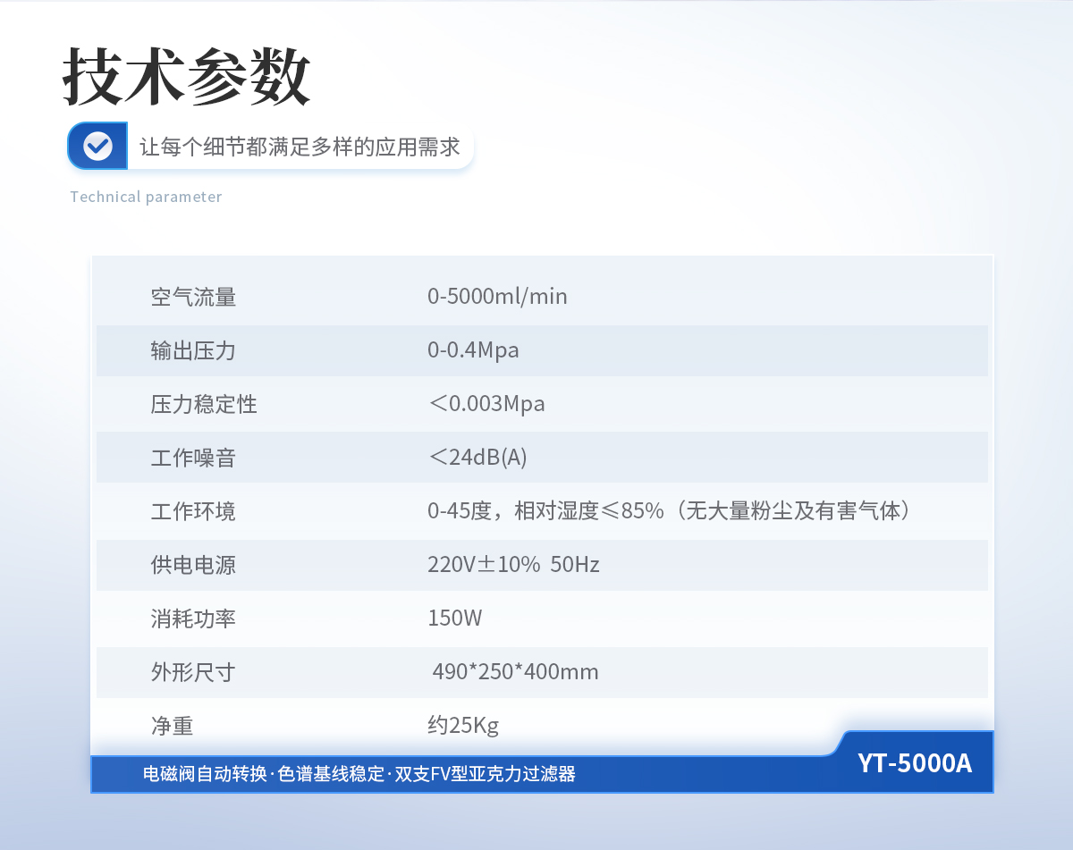 | 1、空氣流量: 0-5000ml/min | 2、輸出壓力: 0-0.4Mpa | 3、壓力穩(wěn)定性:<0.003Mpa | 4、工作噪音: <24dB(A) | 5、工作環(huán)境: 0-45度,相對(duì)濕度≤85%(無(wú)大量粉塵及有害氣體) | 6、供電電源: 220V±10% 50Hz | 7、消耗功率: 150W | 8、外形尺寸: 490*250*400mm | 9、凈重: 約25Kg |