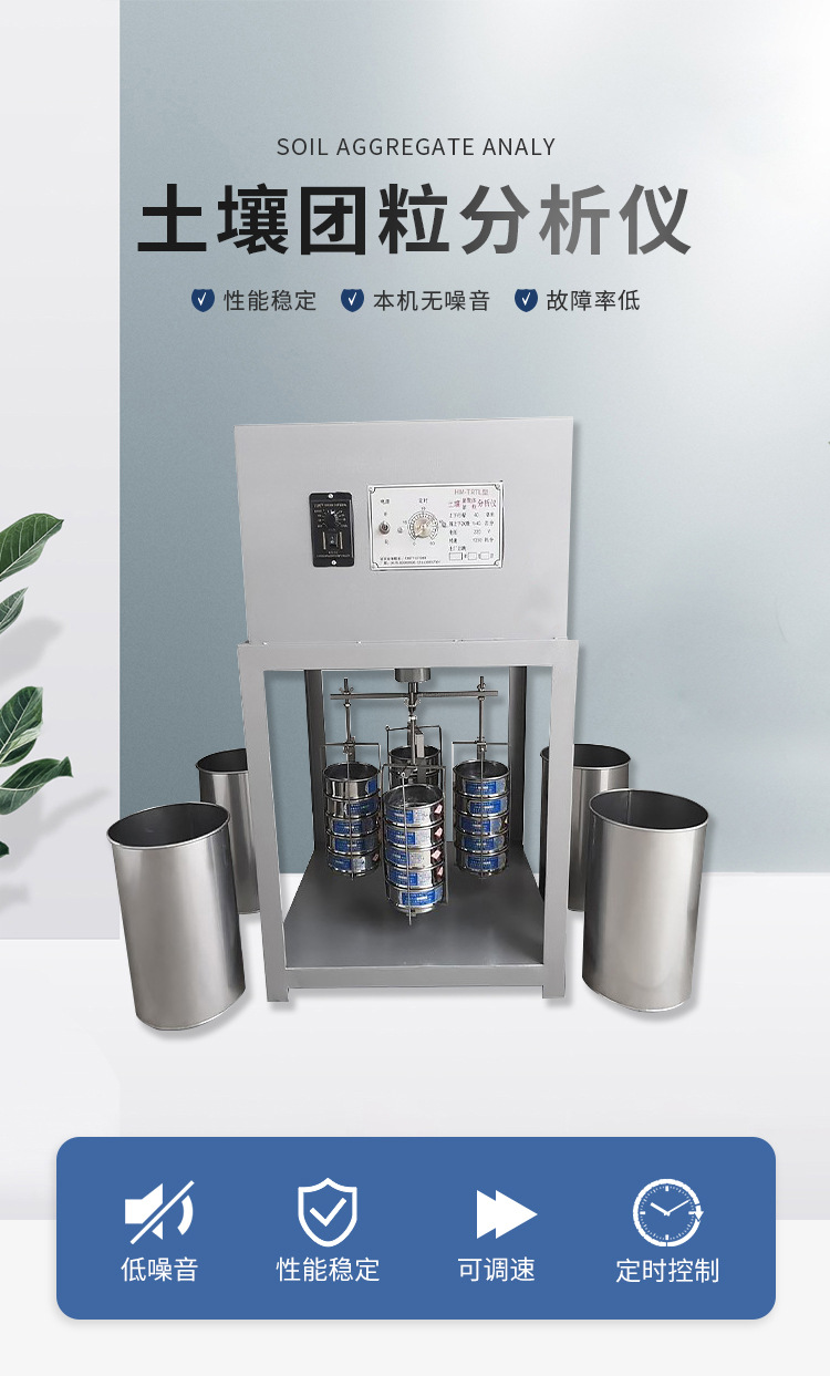 YT-TRTL型土壤團(tuán)聚體分析儀可以在不影響土壤結(jié)構(gòu)的情況下分離出標(biāo)準(zhǔn)大小的土壤顆粒。該儀器含有5個(gè)標(biāo)準(zhǔn)篩的孔徑(5.0mm、2.0mm、1.0mm、0.5mm、0.25mm)分離篩,通過(guò)分離篩在水中的上下震蕩,*后從土壤分離出5種粒徑的團(tuán)粒??赏瑫r(shí)對(duì)4個(gè)樣品進(jìn)行分析。(注.5.0mm的篩子根據(jù)用戶的需求可調(diào)換成0.106mm的篩子)