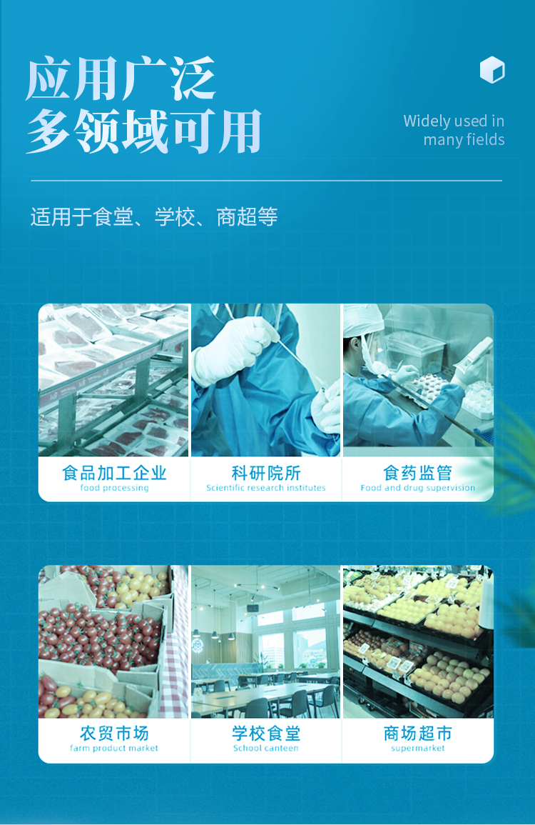 山東云唐智能科技有限公司生產的農藥殘留檢測儀廣泛應用于主要用于蔬菜、水果、茶葉、糧食、農副產品等食品中農藥殘留的快速檢測,依據(jù)國標GB/T5009.199-2003進行檢測,適用于果蔬茶生產基地以及農貿批發(fā)銷售市場現(xiàn)場檢測,餐館、學校、食堂、家庭果蔬加工前的安全速測等。