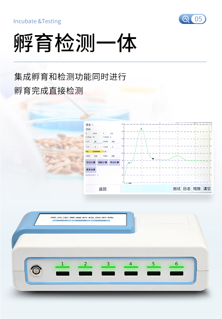 1、一體化設(shè)計,集成孵育和檢測功能同時進行,孵育完成直接檢測;